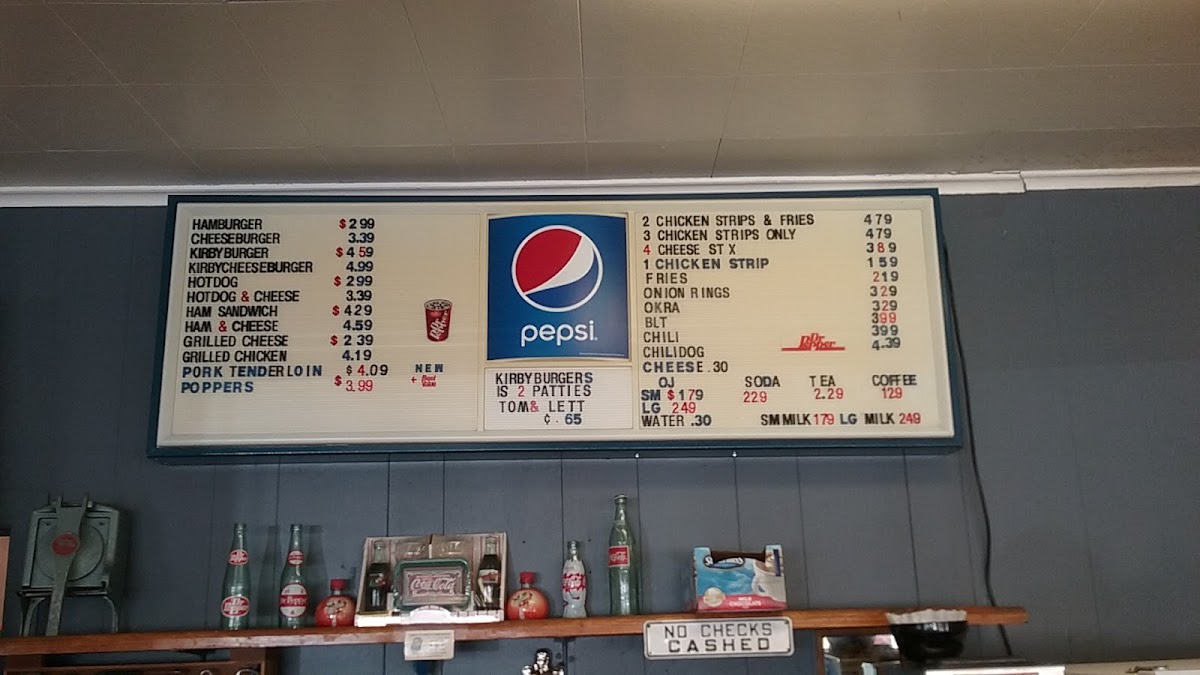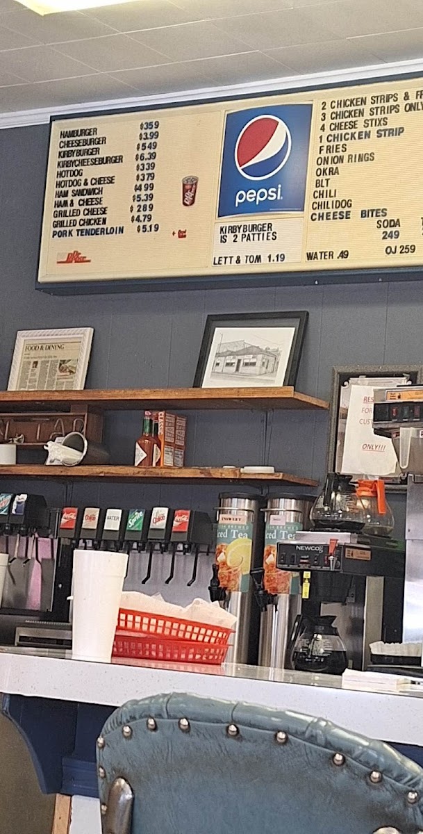 Popular choices like the Kirby Burger—featuring two patties and grilled onions—and the classic cheeseburger are often enjoyed alongside crispy French fries or golden onion rings. Whether you're stopping by for a quick lunch, a relaxing dinner, or a hearty breakfast, options such as the Western omelette or sausage biscuits provide that comforting start to the day. Side items like hashbrowns and fried okra add familiar flavors that complement each meal.